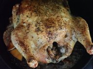 It seems like a good night for a roasted chicken, mashed potatoes, stuffing, green beans and garlic bread! It’s smelling delicious with slices of lemon, thyme and garlic. Wishing us all peace and stability right now.