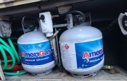 We have been making small modifications on the GMC Motorhome (compared to the year of modifications we made initially). When we were on our first real ‘camping’ trip this summer we made a small list of changes we wanted to make. One of the first things was removing the original propane tank and replacing it with two 5 gallon removable tanks. This gives us a smidge of ‘basement’ storage and will give us more flexibility when refilling the tanks.