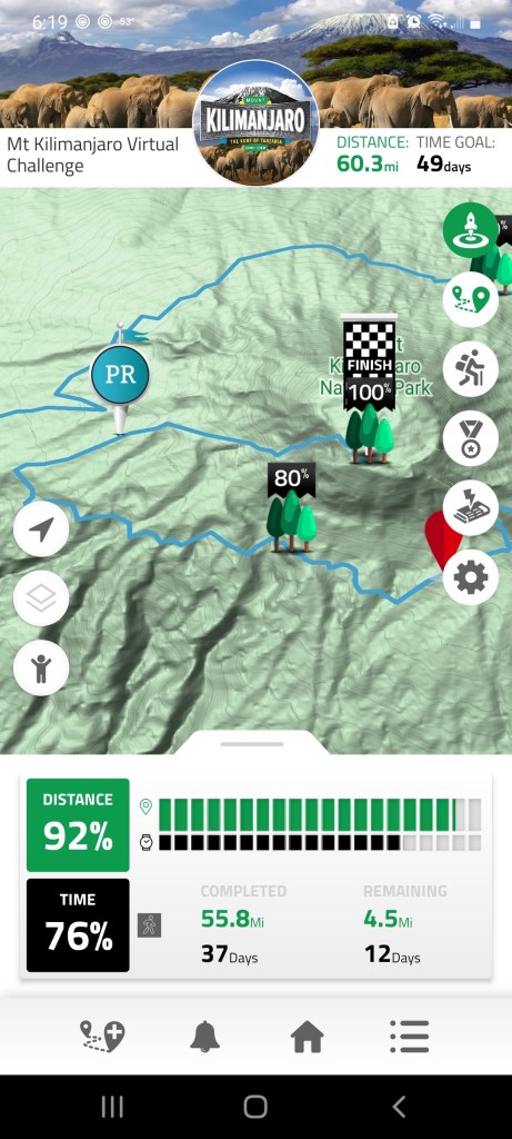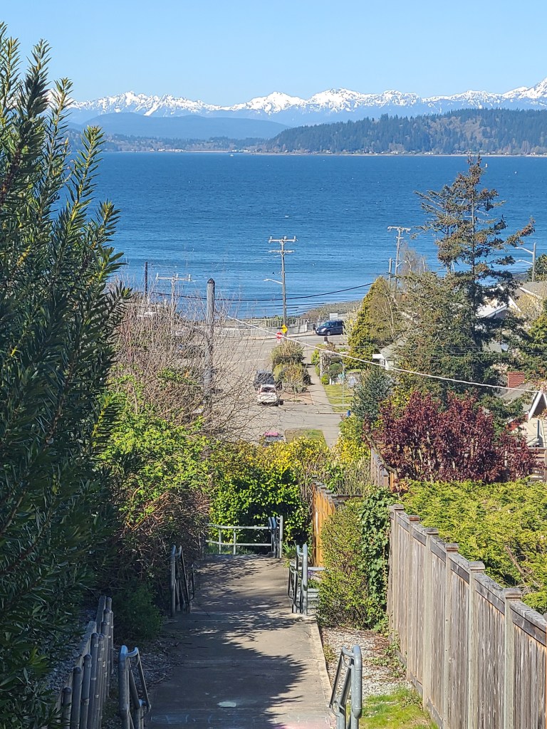 I will be finishing my virtual walk up Mt Kilimanjaro this week. I’m so close to the 100% marker and am tempted to not post this weeks blog until I am done but I am working to post every Thursday morning, whether I have something to say or not! I will finish the last 4.5 miles by Friday at noon and congratulate myself next week. Here is a view from the top of the 109 stairs we’ve added to our walks. The weather changing into spring gives such a different view as the leaves appear and the flowers begin to bloom.