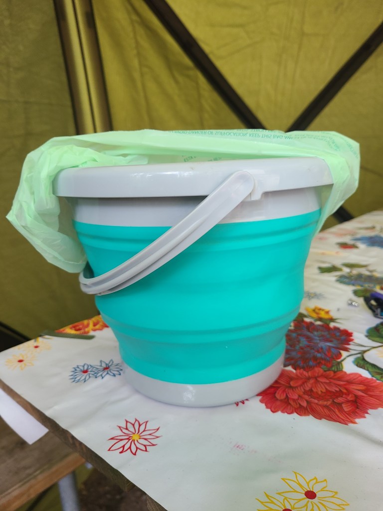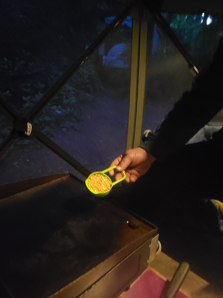 We knew each purchase we’ve made for the motorhome had to be well thought out. When you are living in approximately 208 square feet of space pretty much everything needs to have at least two purposes. Who would have thought the collapsible buckets we found would be some of our favorite items – we lined one with a (compostable) bag for garbage and one we used for the popcorn we popped on the Blackstone Grill!