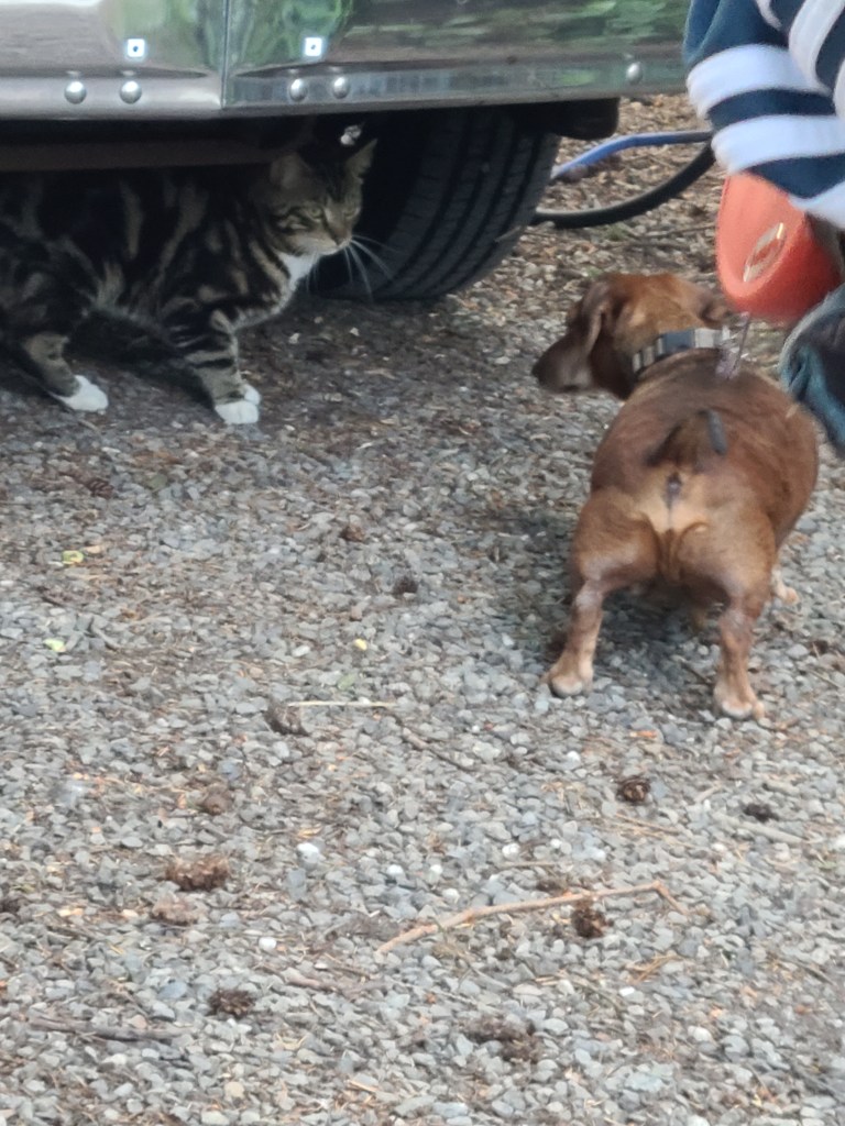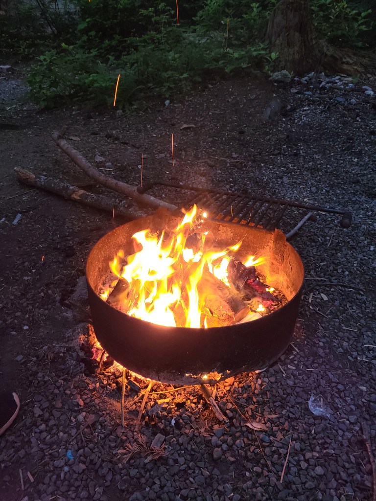 We wonder sometimes, what is this type of ‘camping’? We spent many years tent camping. When your meal is dependent on a woodfire or pumping the life out of a Coleman stove gas pump to get a flame and sleeping can be a real Princess and the Pea event, that is some real camping! While we continue to plan a life of fulltime RV-ing, we do think of those times we camped near sites of those who are gathered for a weekend of drinking and loud visiting, as though they are the only ones at the park. While we want everyone to enjoy their weekend getaways we dread being ‘next door’ to the rv that has an outdoor tv blaring. As we pulled into our camping spot we looked around and crossed our fingers that our week would be an experience that everyone would enjoy, us and our neighbors. We were happy to see the staff drive throughout the park many times per day and that everyone at the park was respectful of their neighbors. Adults visiting, kids playing at the playground and riding their bikes, people walking their pets on leash and gathering around campfires in the evenings – it was a wonderful experience.