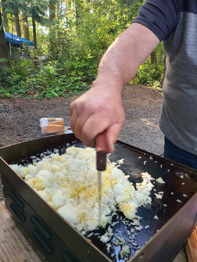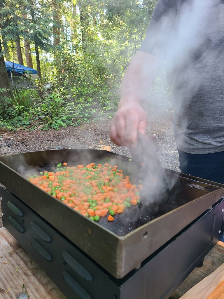 Cooking outdoors wasn’t limited to hot dogs over the firepit – though we wished we had a fresh trout to skewer and cook over open flames! Although we could have cooked the jasmine rice in the Instant Pot at the campsite, we cooked it ahead so it would be cool when we wanted to cook dinner the first night. And we had leftovers for lunches later in the week.