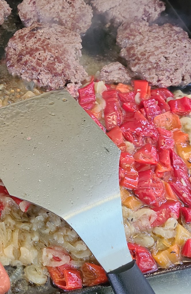 We made a version of Philly Cheese Steaks….our version. We grilled burgers, a few slices of bacon, Mama Lil’s Peppers, caramelized onions added some American cheese and toasted the buns on the grill for a great dinner. We are certainly enjoying our outdoor kitchen and dining area!
