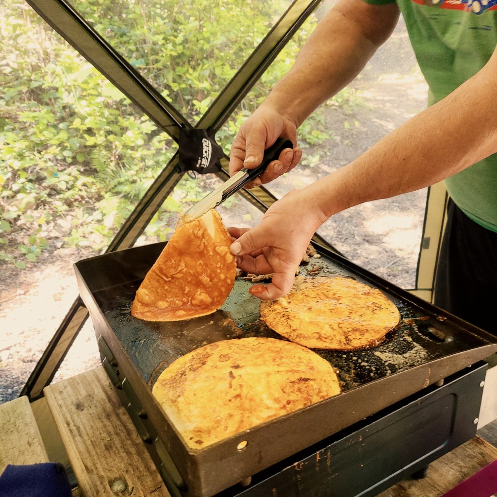 Most people grill hotdogs and steaks, bacon and eggs, and leave it at that. I love that y’all are being so much more creative. It makes the outdoor camping experience that much more unique. Also, please send me the raclette and pulled pork! π