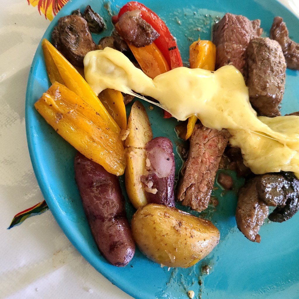 #gmcmotorhome #eleganza2 #outdoorcooking #mealplanning #preparingforretirement #livinglarge #homeiswhereyouparkit #drivewaysurfing #raclette #phillycheesesteakburger #pulledpork #missionlowcarbtortilla