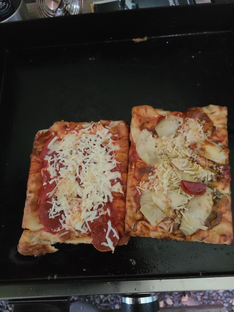 But wait, there’s more! The Blackstone Grill is SO versatile – we made enchilada pulled pork pizza pies, Raclette, pizza and made popcorn right on the grill. The Blackstone may come out of the motorhome for more regular use for outside cooking or we’ll just do more driveway surfing at home!
