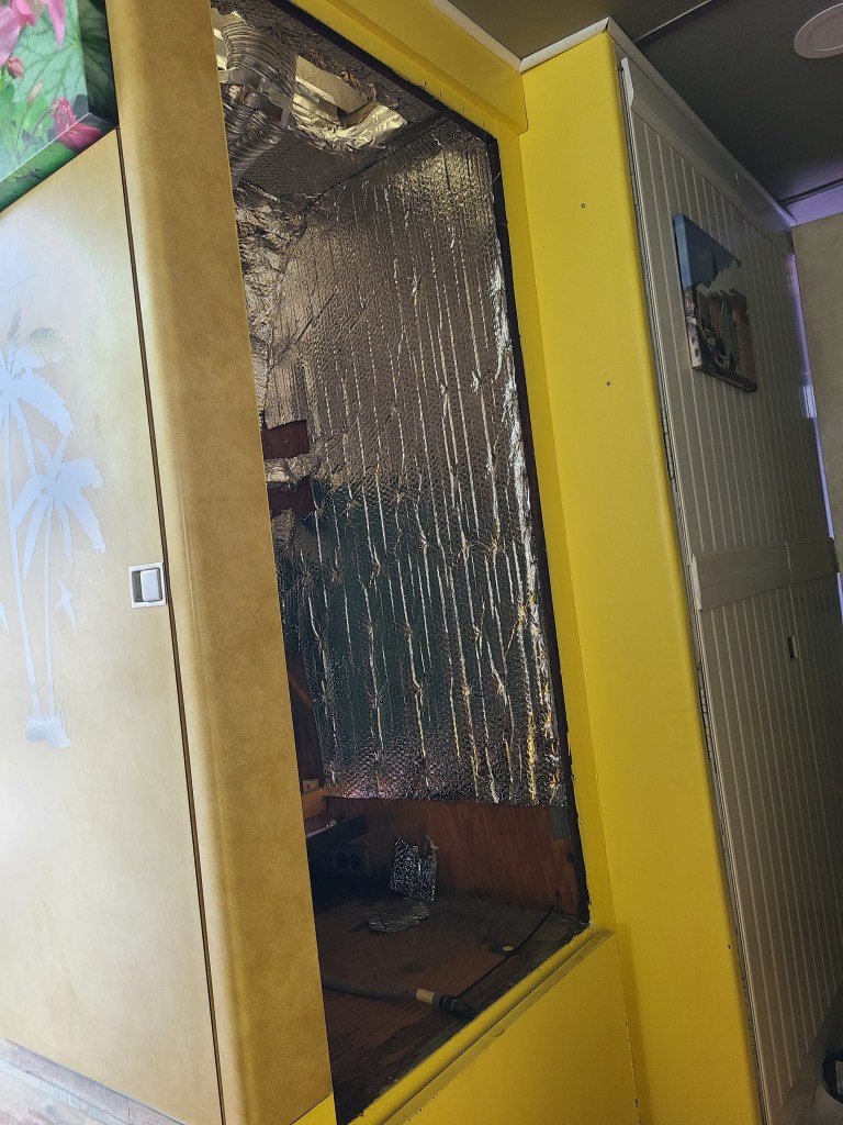 #gmcmotorhome #eleganza2 #drivewayrepairs #diy #newfrigerator #oldrefrigerator #vintagefridge #vintagemotorhome #makeitfit #makeaplan #betterherethenthere #chippedpaint #cleanup #fillitup #icecreamforcamping