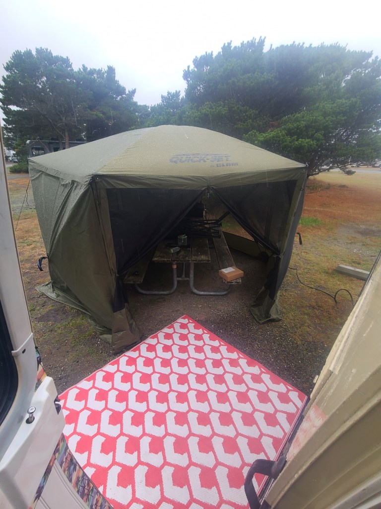 After months (and months) of a beautiful rainless summer, the September week we reserved to escape in our 1975 GMC Eleganza 2 motorhome was a typical NOVEMBER Washington weather week! Rain and wind gusts up to 60 mph didn’t dampen our spirits, we enjoyed our time away from home in part because we have been modifying the motorhome based on our expectations of things like weather and destinations, having electricity or boondocking.