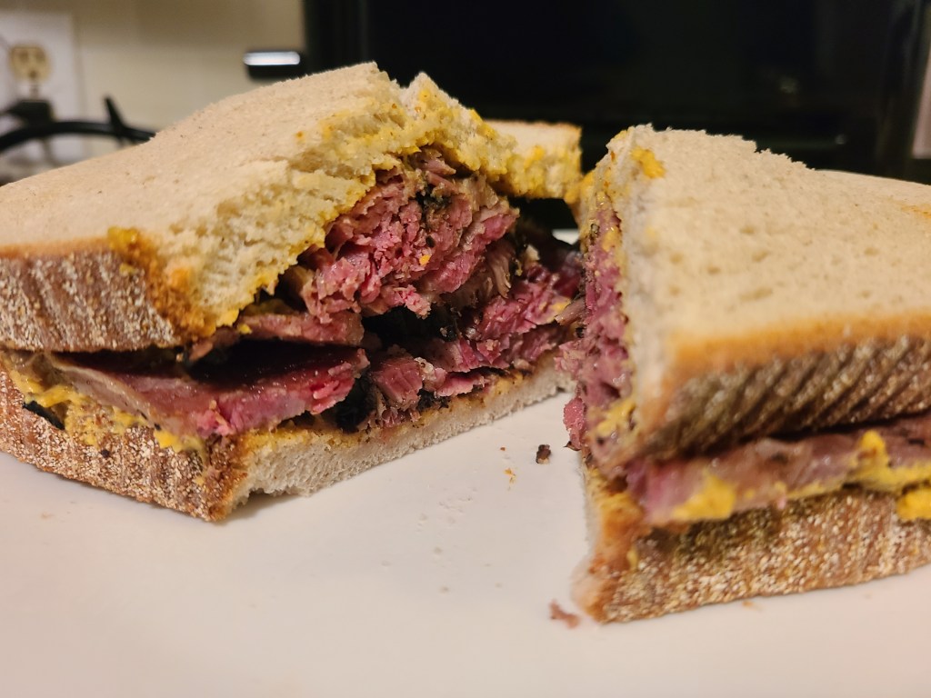 We ordered from NYC’s Katz Deli with the best intentions of a holiday meal together for New Years Eve. The road conditions made it impossible to be delivered on time but even with the delays it was packed so well, even though it came a few days later, the ice packs were still frozen and we were able to enjoy it last night. I found a photo of my ordering from Katz in person when were visiting NYC years ago. I used the instant pot to heat the corned beef and pastrami. I poured a cup of beef broth in the bottom of the pot then put the sliced meats into the steam basket and set it on manual for 4 minutes. It was warm and tender on lightly toasted rye bread with Katz’s deli mustard. I’m a fan of the full sour pickle as a side along with the knish. We were lovingly admonished by our Brooklyn friends when we had visited and ordered a sweet potato knish instead of a regular knish. Gotta say, I liked the traditional knish better! Instead of eating together we traded text messages and photos of our meal this week. This may have been one of my favorite ‘virtual travel moments’ – it felt like we were in the New York deli but were eating our actual meal in Seattle!