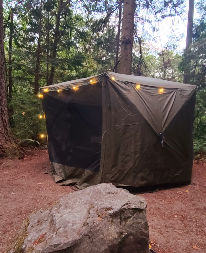 Besides our Berkey water filtering system, the Omnia Stovetop Oven and our AirHead composting toilet, I realized I have a few more favorite things that make life easier when we are out and about. The folding camp chair and air filled ottoman make it easy to read a trashy novel under the tree canopy with a light breeze blowing through. We talk about the Clam Quickset tent a lot and it still lives up to our expectations. We have turned into old pro’s at setting it up and breaking it down.