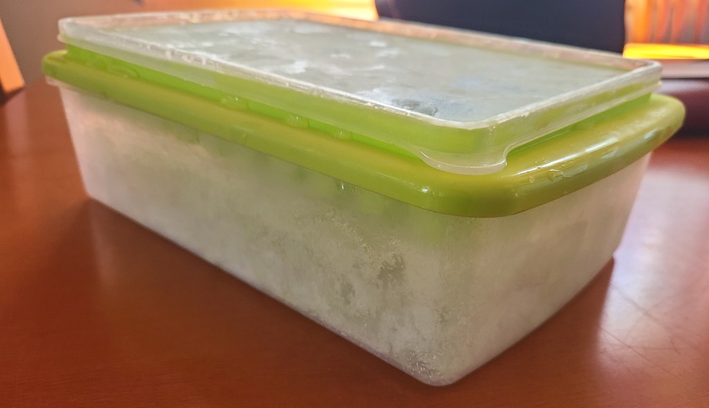 We had bought a counter top ice maker but I didn’t think the quality or quantity of the ice it made was worth sacrificing counter space for. This ice tray doesn’t take up much room in the freezer and stores the cubes easily. It’s compact perfection.