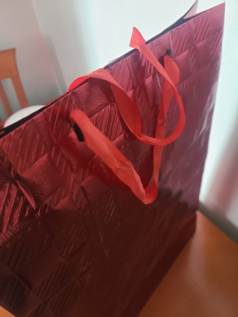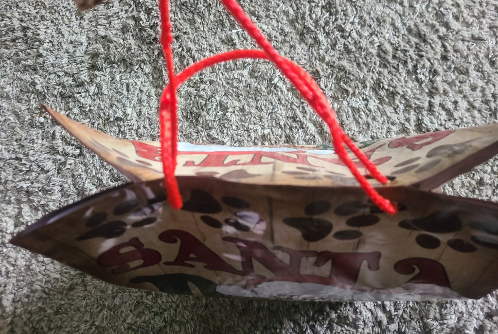 This is the antithesis of ‘long story short’ – I was watching DIY videos on Youtube and stumbled upon the correct way to use a gift bag. All the gift bags I’ve used over the years and the frustration of using tissue paper that would be tossed (or gently snatched from the giftee and folded to store away for next year) and here was a solution. Maybe I’m the last person on the planet to realize you should poke the ends of the bag handle into the opposite sides and gently pull the two handles to snugly close the gift bag so no need for tissue paper to hide the gift! Never too old to learn a new trick.