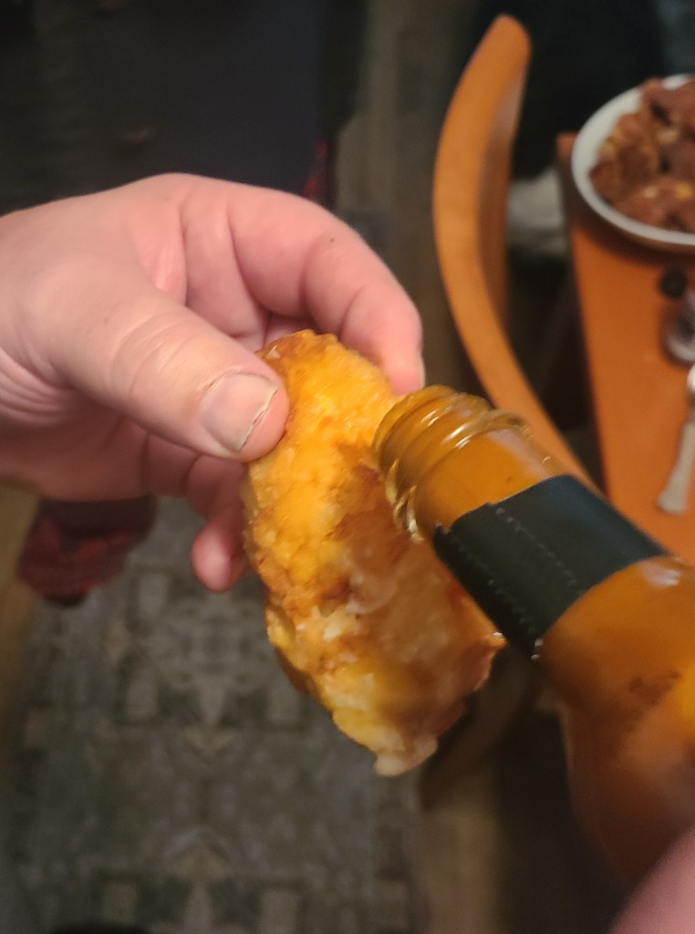 He was gifted the Hot Ones’ Season 18 hot sauce package. We’ve always enjoyed spicy foods though each have our limit of what we consider too hot. The first five sauces were fine, the #2 is an island/pineapple flavor, super good and I will look to buy that. It would be great on fish/chicken and rice. None of them were hot for hots sake- they had a decent taste, until you got to number six, Collards n ghost with ghost peppers. Holy Moses. It wasn’t brutal but it was hot and my lips didn’t like it. Father and son went all the way through and did the ‘last dab’, in fact they had to add sauce to all of them because I was very conservative when mixing them.