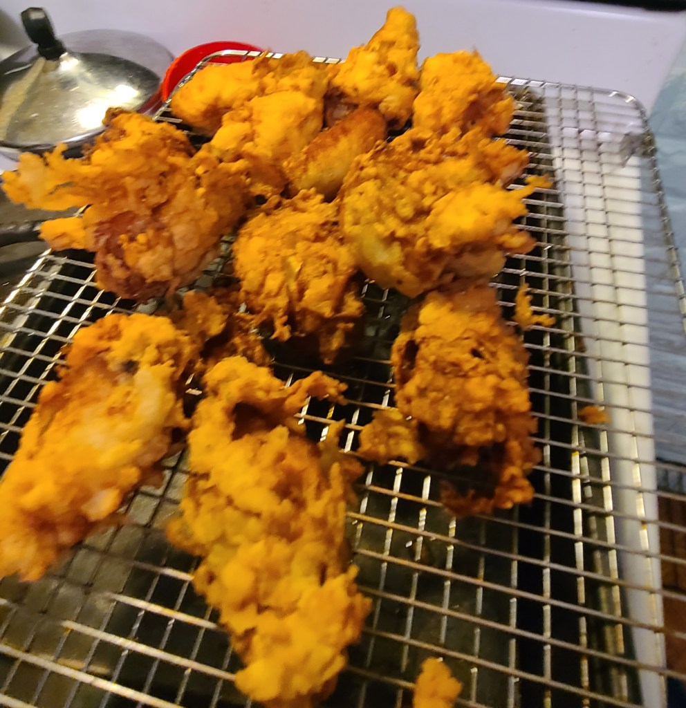 We started 2023 with a hot wing challenge. It appears that, after nearly 40 years of marriage, my sweet husband has been hiding his ability to cook! And I mean indoor cook – not just over the blackstone grill or a bbq. He may have really messed up letting that little tidbit leak out. He made some delicious chicken wings, marinated them in buttermilk then did the F.E.B. (flour, egg, bread) before frying.