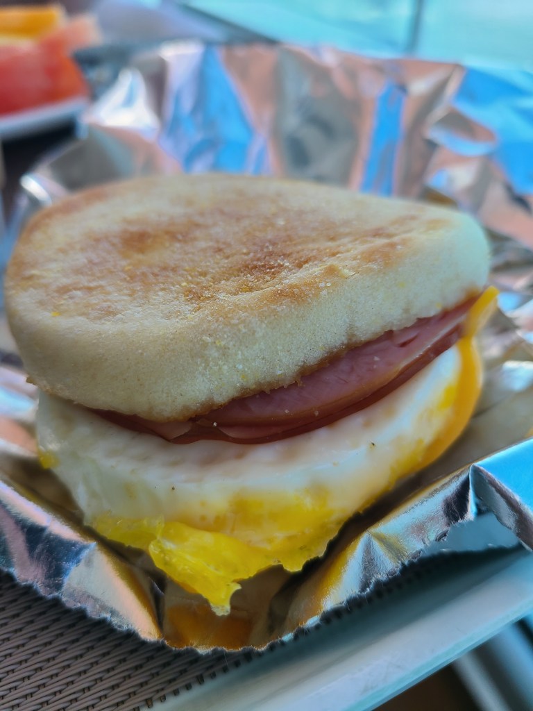 Room service is a great way to go too. Princess offers a Canadian bacon, cheese and egg muffin for breakfast. Chips and guacamole, cheese quesadillas, sandwiches, tacos, burgers and salads are some of other options for room service. It’s nice to be able to enjoy a meal outside on your balcony or even have a ‘bed picnic’ and watch a movie.