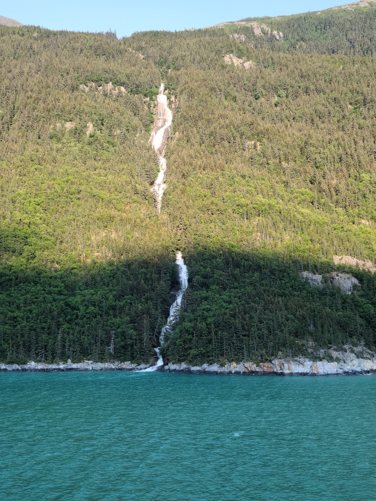 Alaska is a no filter needed destination. This waterfall stretched from the top of this hillside into the water. As we cruised by you could hear the water slide into the ocean and seconds later we saw a whale surface and wave his big tail at us. There were so many wildlife sightings from the deck of the ship we didn’t need to purchase a sight seeing excursion.
