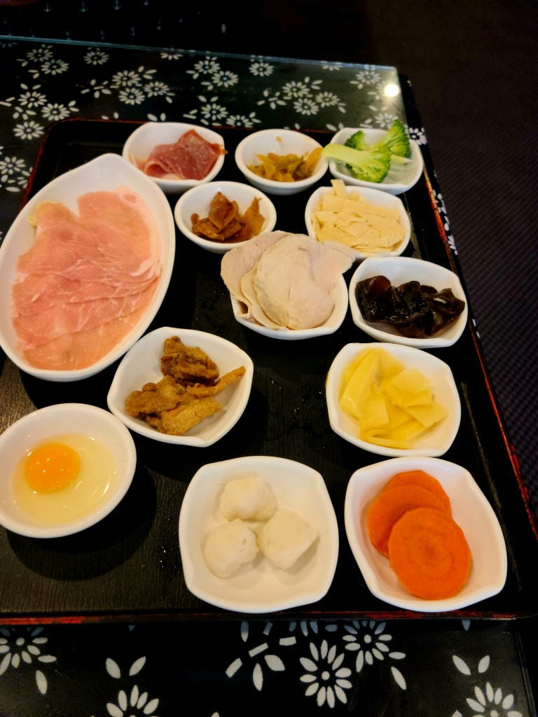 *The ingredients for the traditional are: Chinese cabbage, Bamboo shoots, tofu skin, carrots, black mushrooms, Chinese pickle, quail egg, deep-fried mushroom, pork slice, homemade fish balls, Yunnan ham and crispy pork.